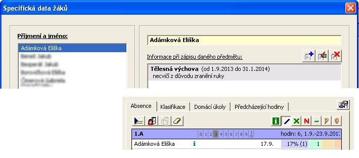 možno zobrazit při zápisu hodiny. Tato informace je vázána na zápis určitého
